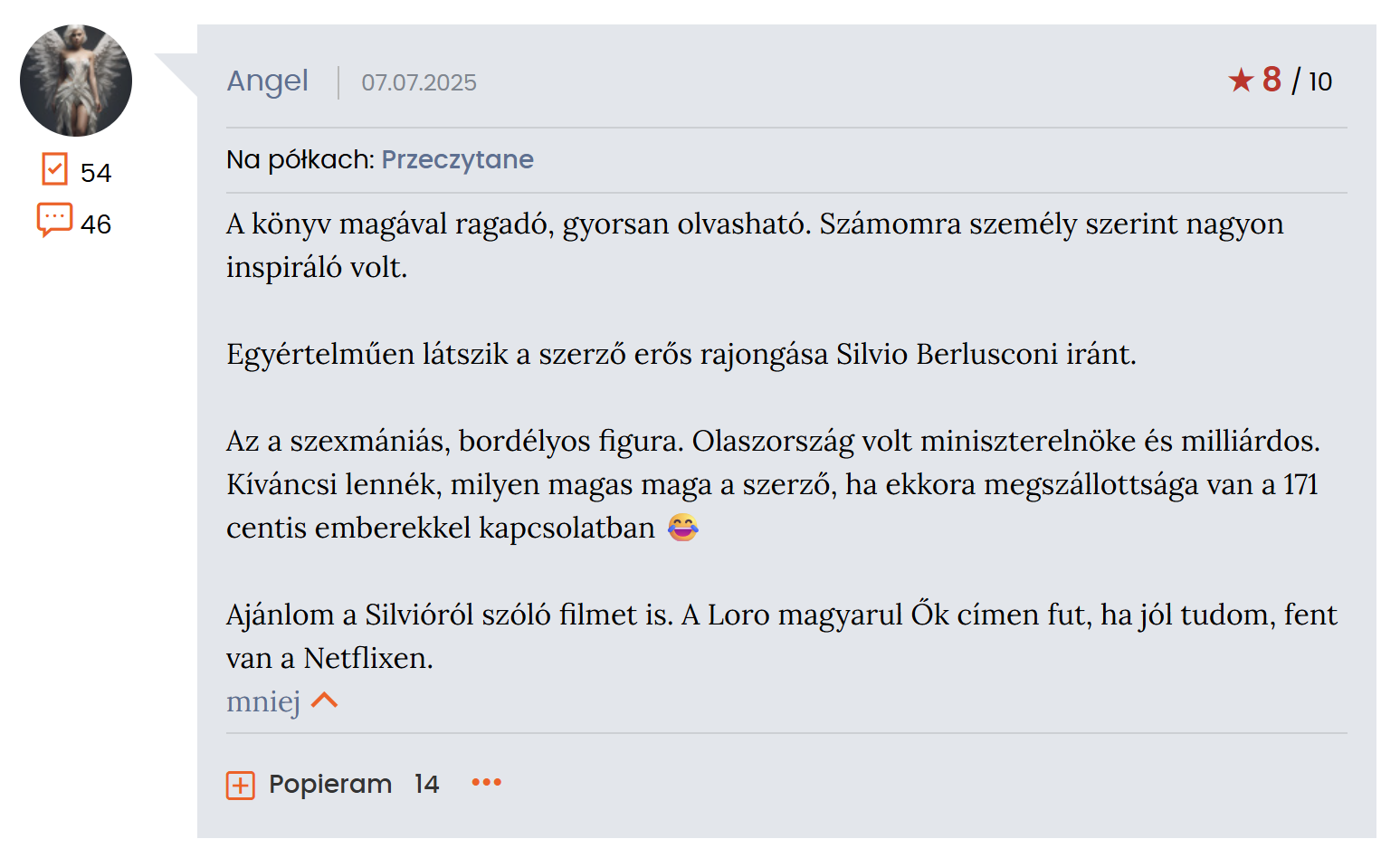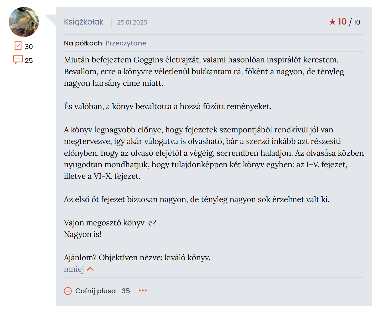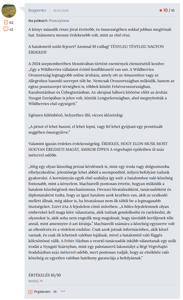 Olvasói értékelések átlaga Lengyelországban: